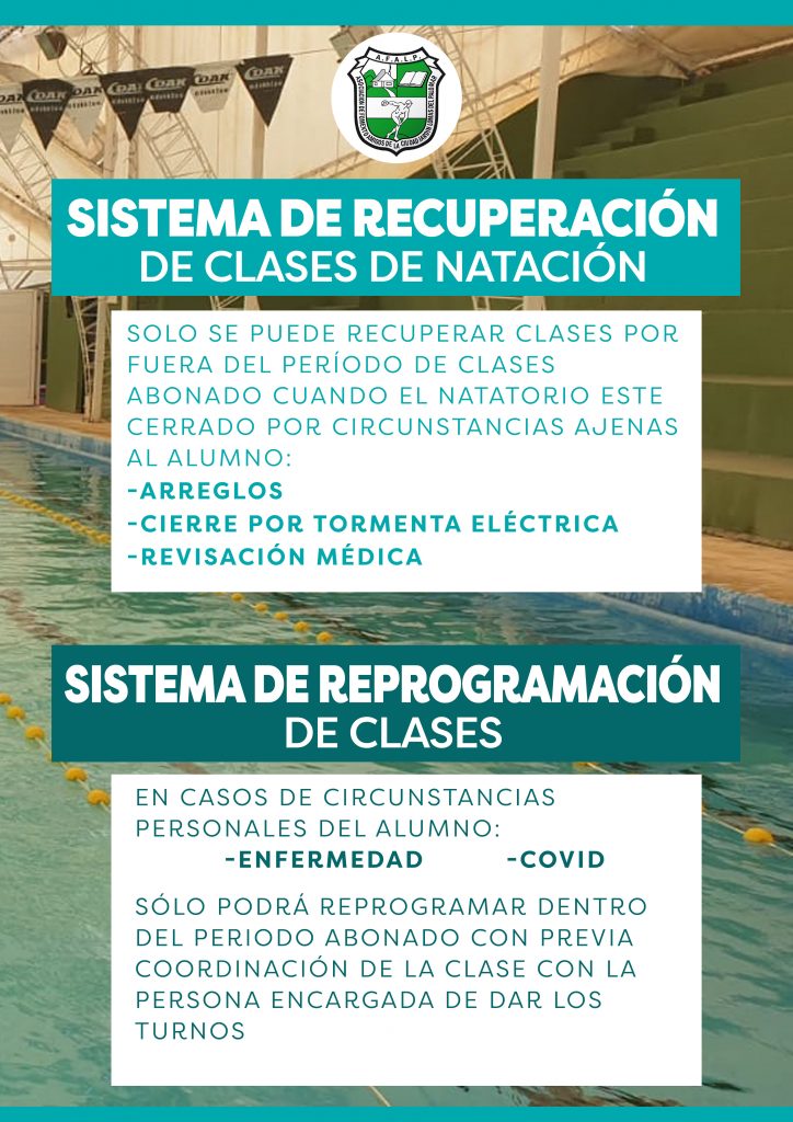 Recordar de reconfirmar a fin de mes, los días y horarios en cuales concurrirá a clases de natación el mes siguiente.